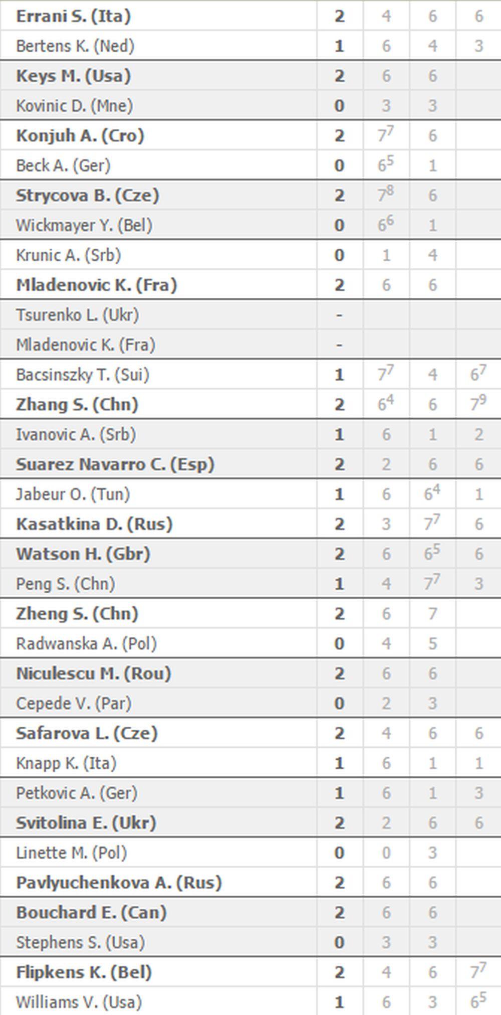 I osma teniserka na svetu, Roberta Vinči, je poražena u prvom kolu, a od nje je bila bolja Ana Karolina Šmidlova, 61. na WTA listi. Slovakinja je slavila 7:5, 6:4.