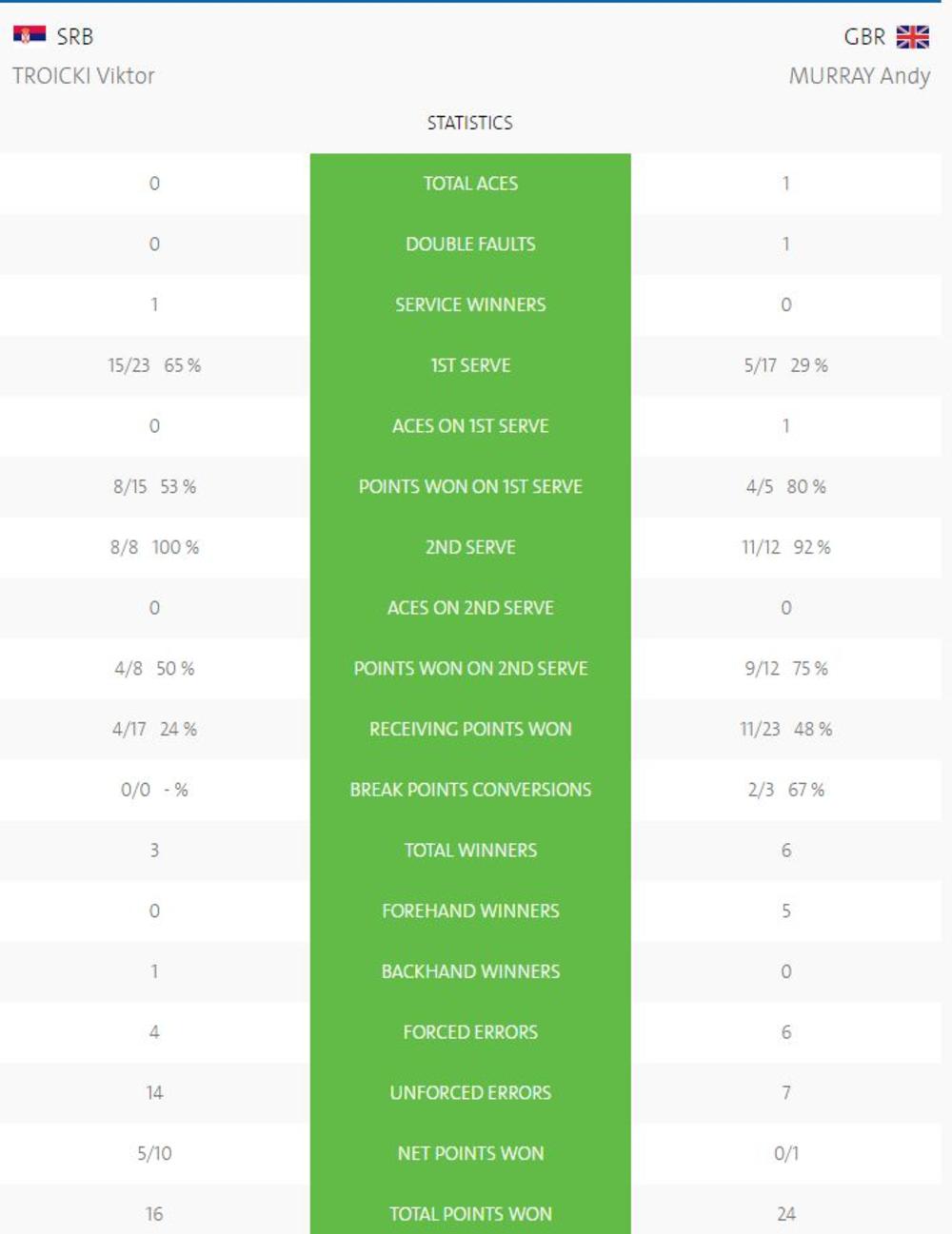 Viktor je odlično počeo meč, brejkom, ali je Britanac uzvratio istom merom i do kraja meča uspeo da pokaže koliko je kvalitetniji teniser od Troickog.