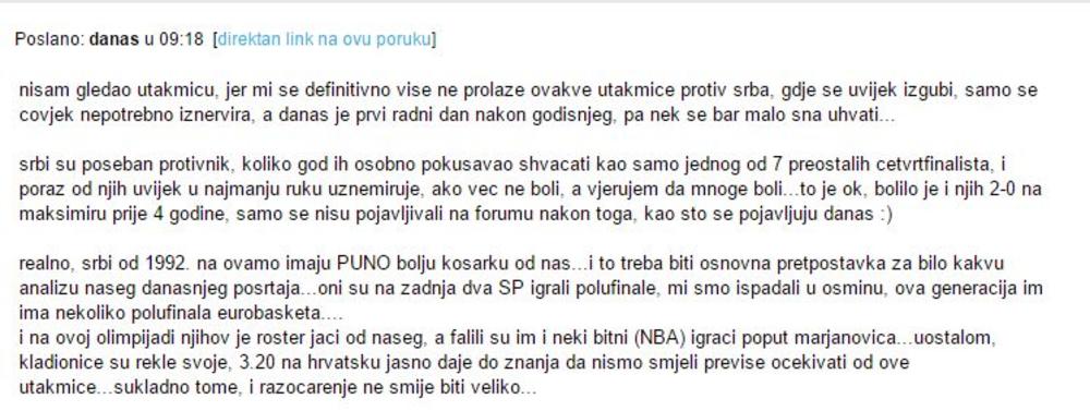 Na forumima se mogu pročitati veoma raznorazni postovi u kojima se vidi sav bol zbog poraza od Srbije.
