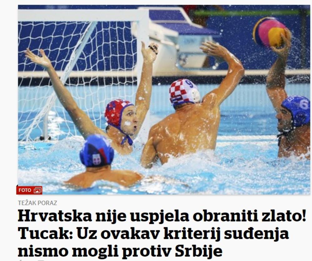Verovali ili ne, ovo je način da najveći hrvatski dnevni list i portal, "Jutarnji list", informiše svoje čitaoce o upravo završenoj utakmici vaterpolo finala na OI, u kojoj je Srbija potopila Hrvatsku 11:7.