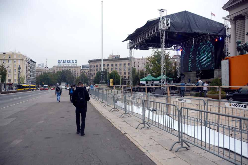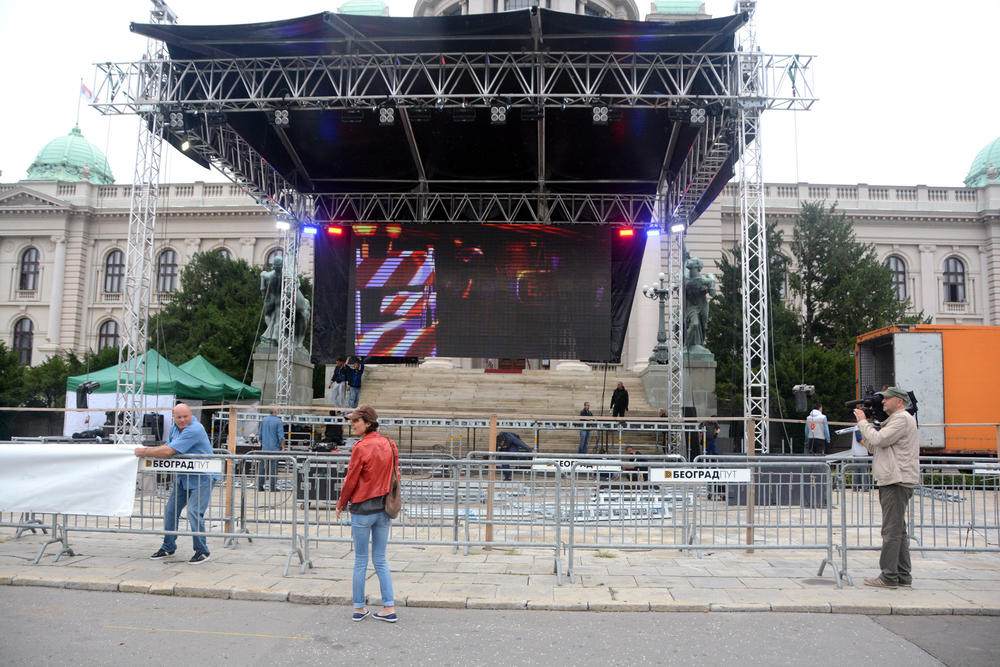 Radovi na postavljanju bine na koju će izaći naši momci i devojke koji su nas toliko obradovali prethodnih dana, uveliko traju, a naš fotoreporter je snimio nekoliko fotografija par sati pre početka.