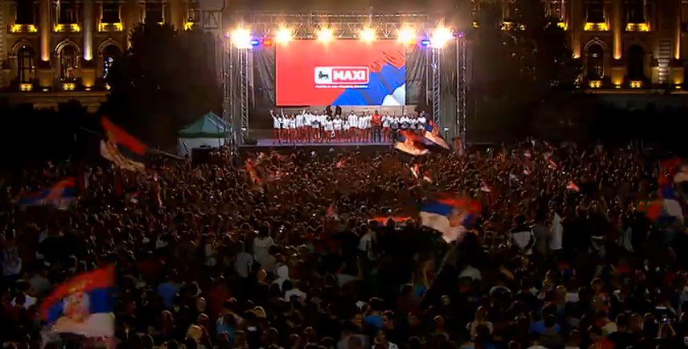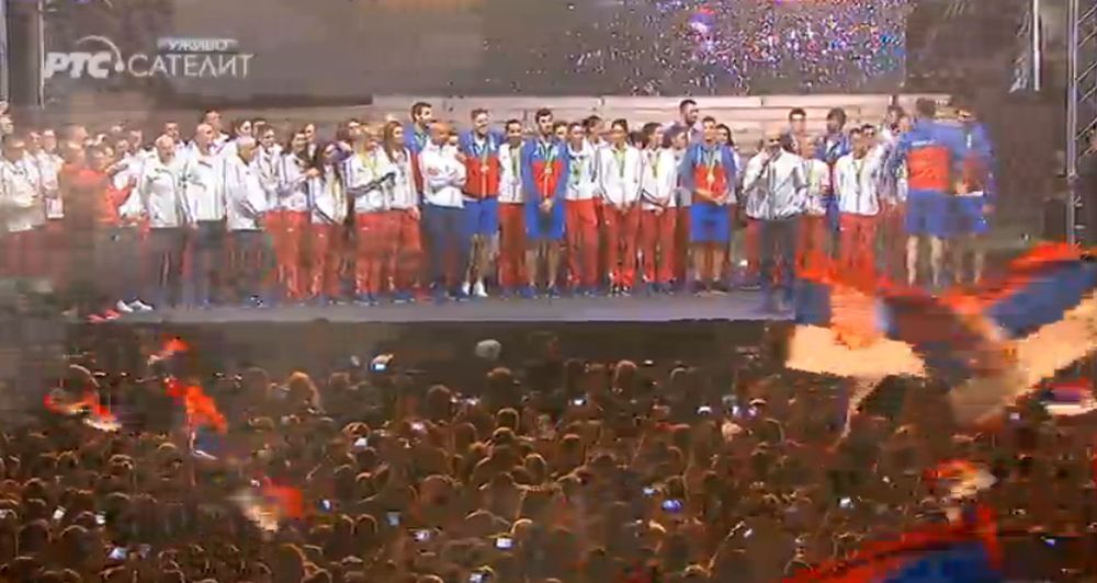 20:45 - Evo i srebrnih "Orlova", košarkaša Srbije! Histerija pri njihovom izlasku, pesma "Možeš da nam p**iš Klintone" i bakljada.