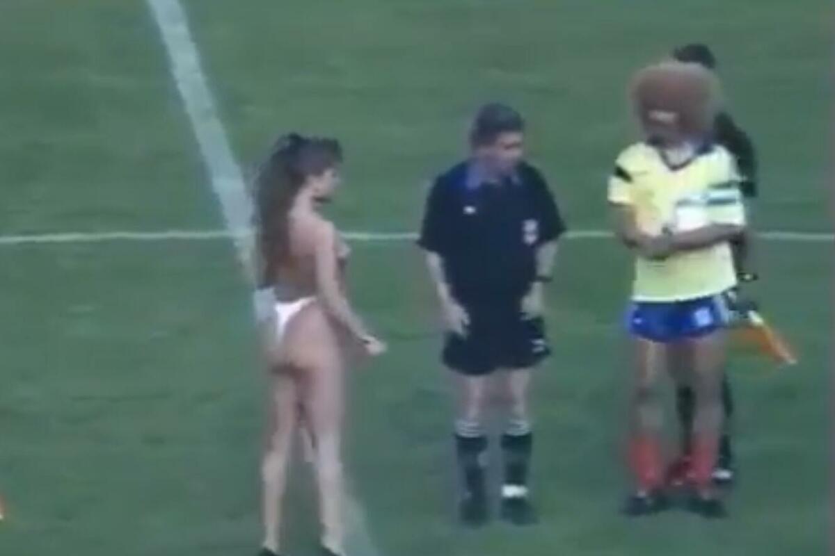 Ona se na oduševljenje publike pojavila golih grudi, samo u donjem vešu. Njeno prisustvo najviše je obradovalo legendarnog Karlosa Valderamu. Čuveni Kolumbijac nije skidao pogled sa zgodne Mađarice koja se pojavila na terenu, a publika je bila u transu.