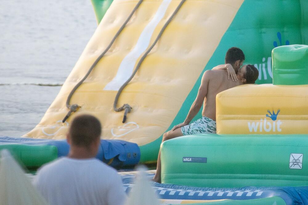 U jednom trenutku su se sakrili u uglu gumenog tobogana i razmenili nežnosti. Kamere su uhvatile njihov strastan poljubac.