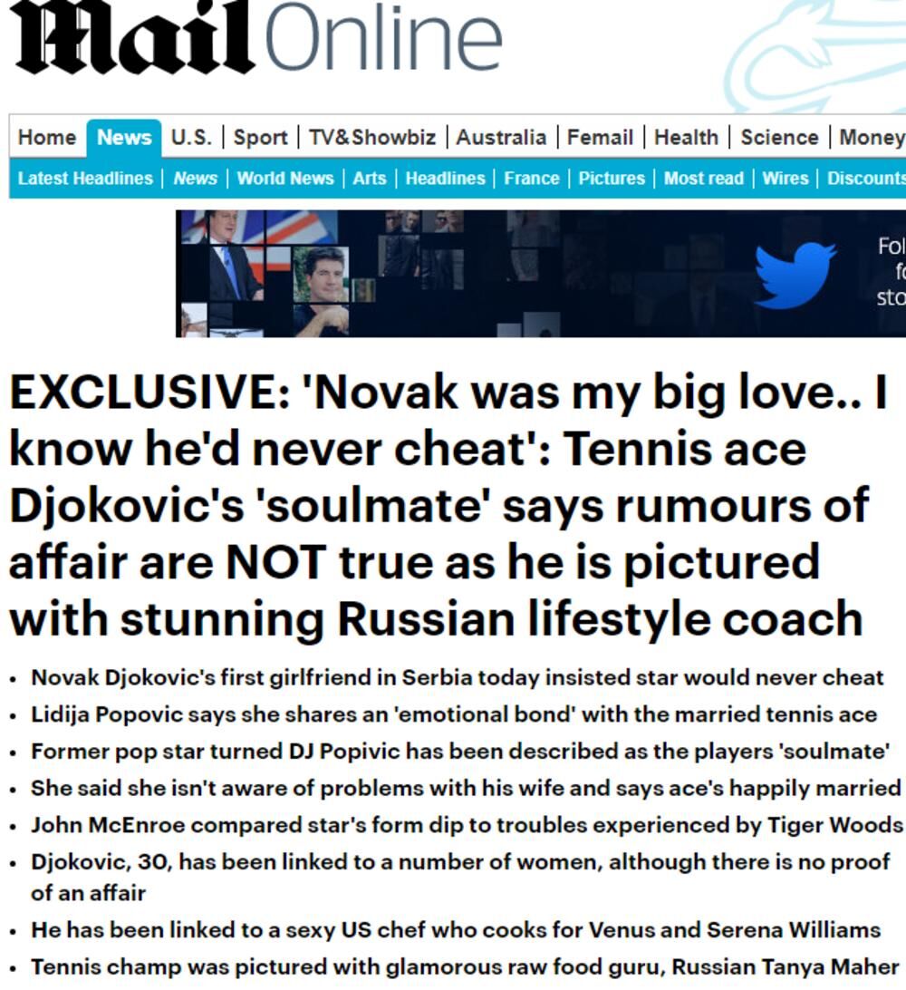 Neumorni su britanski mediji u svojim pokušajima da uzdrmaju Novaka Đokovića pisanjem o njegovom braku i smeštanjem ljubavnih afera srpskom teniseru.