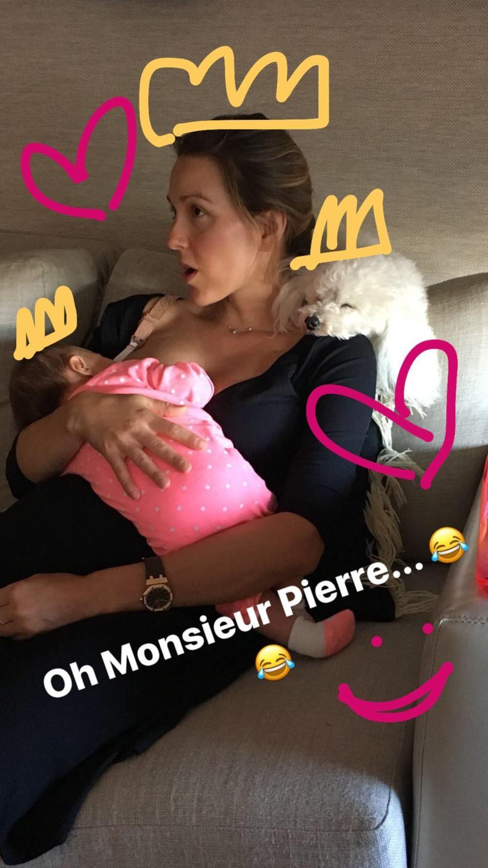 Na fotki se vidi kako Jelena drži u naručju Taru i doji je. Tu je i Pjer Đoković, jedna od tri pudlice koje imaju Jeca i Nole.