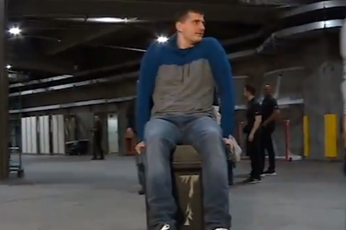 Jokić je pred kamerama i svim prisutnima seo na kolica i pozirao pred domaćim fanovima, dok ga je gospodin iza gurao.
