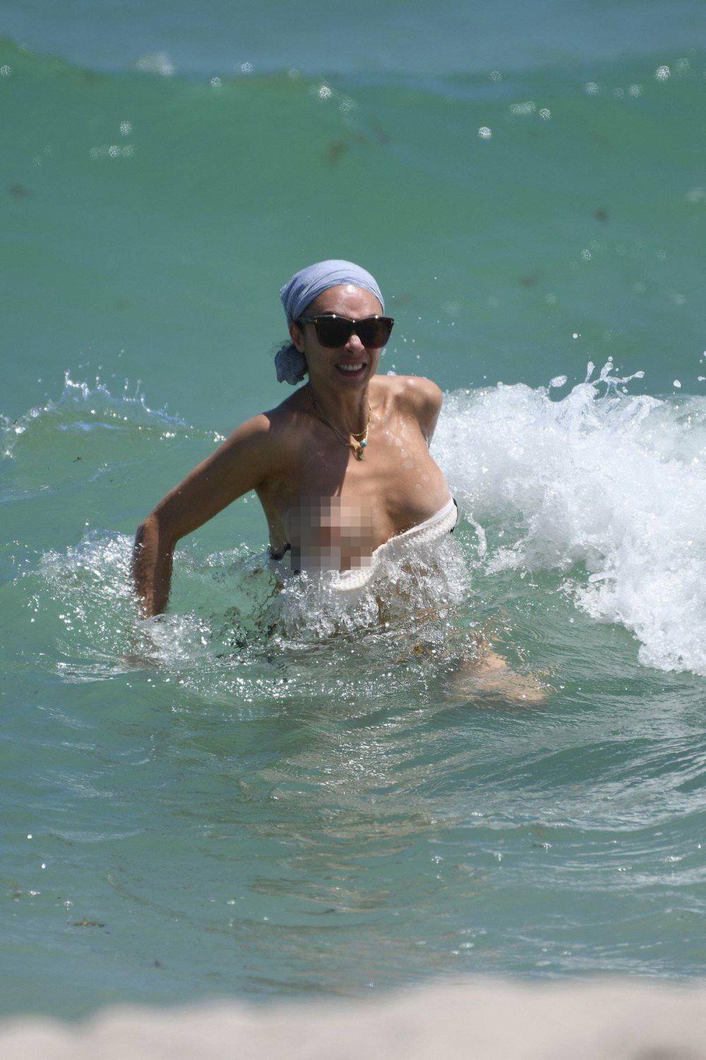 Usled malo jačih talasa njoj je spao kupaći kostim što ona nije odmah primetila, pa su tako svi mogli da uživaju u pogledu na njene grudi koje se nije trudila ni odmah da sakrije.
