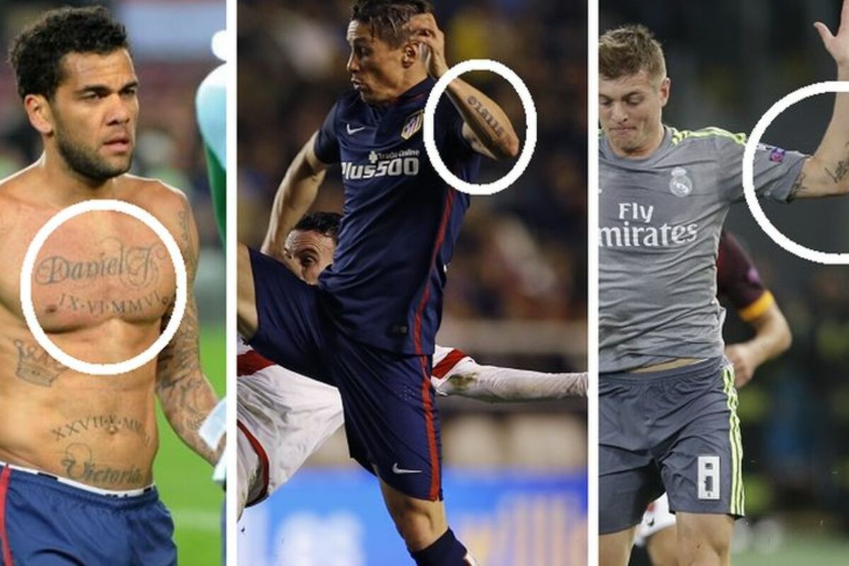 2 Viktor Valdez - ima na podlaktici istetovirano ime svog sina Dilana. 3. Lionel Mesi - ima na listu istetoviran otisak šaka i ime njegovog sina Tijaga. 4 Toni Kros - ima na bicepsu istetorivano ime i datum rođenja svog sina Leona.