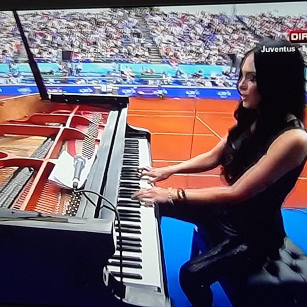 Jedna od najvrelijih, slobodno možemo da kažemo, svetskih umetnica u ovom momentu, koja osim lepotom i neverovatnom harizmom zrači i muzičkim talentom i umećem, odsvirala je pred prepunim "terenima Novak" na Dorćolu mini-koncert od 20 minuta.