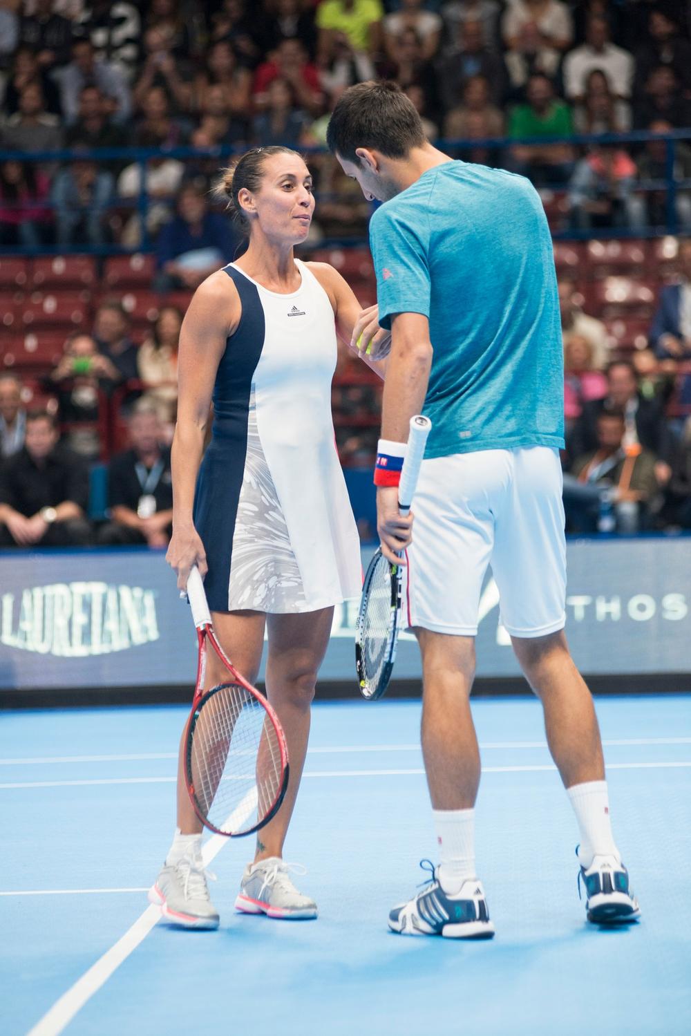 Nakon toga je usledio pravi spektakl, jer su na teren izašli Novak i Penetin sveži suprug, Fonjini, pa je usledio duel parova. Na jednoj strani Đoković i Italijanka, a na drugoj Serena i Fabio.