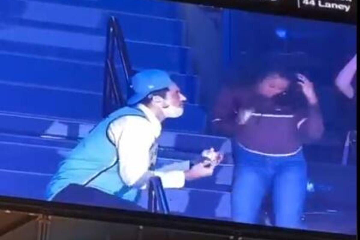 Tokom pauze na utakmici WNBA lige između domaćeg Njujork Libertija i Vašington Mistiksa, jedan momak u dresu Sabrine Jonesku, zvezde Libertija, klekao je ispred svoje devojke sa prstenom u ruci.