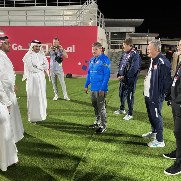 Delegacija Al-Arabija, kluba čije terene "orlovi" koriste tokom Svetskog prvenstva, pozdravila je Dragana Stojkovića i njegove pulene, a članovima našeg rukovodstva, Nenadu Bjekoviću, Jovanu Šurbatoviću i Stevanu Stojanoviću, uručila prigodne poklone.