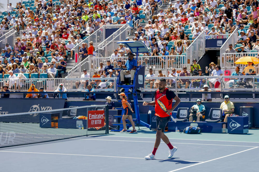 Australijanski teniser Nik Kirjos ponovo se našao u centru pažnje na susretu u Majamiju protiv Janika Sinera. Kirjos se posvađao sa sudijom Karlosom Bernandesom tokom taj-brejka u prvom setu kada mu je oduzet poen zbog nesportskog ponašanja, nakon čega je razbio reket.