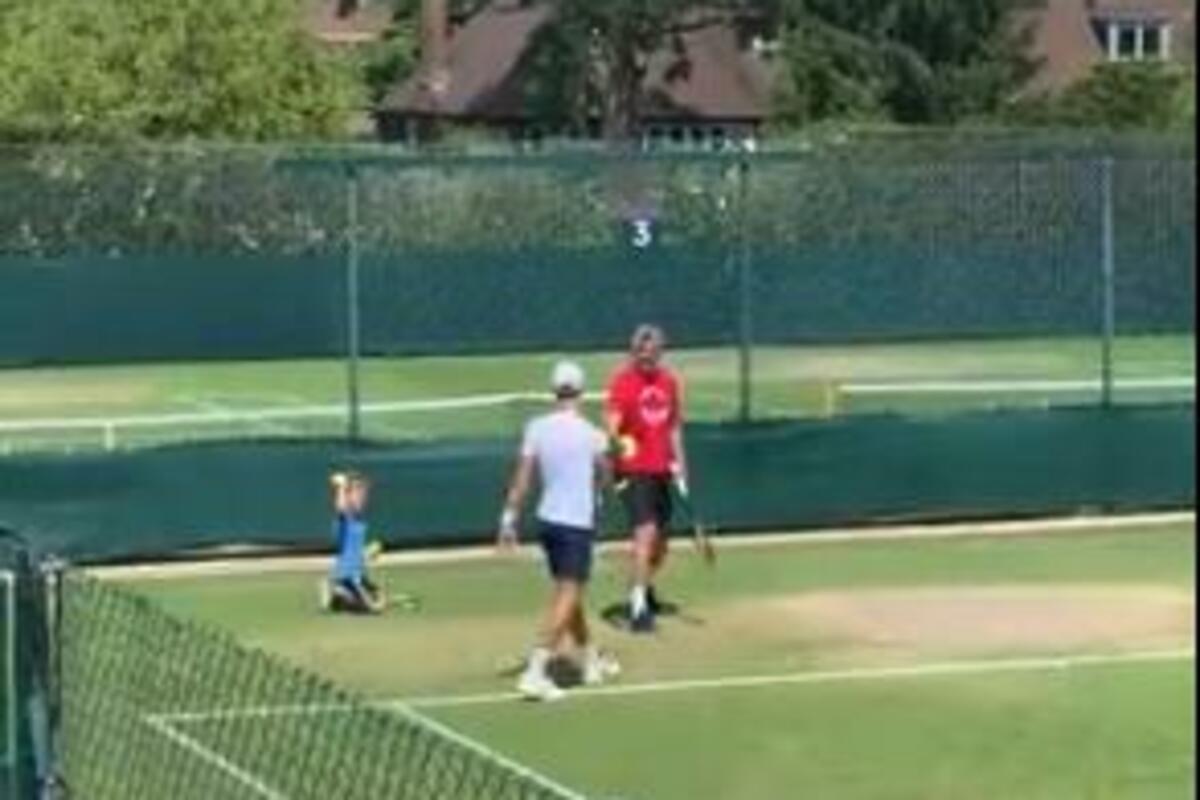 Kao i na nekim prethodnim treninzima, i na ovome je Novaku društvo pravio sin Stefan, koji redovno trenira i sparinguje sa njim na treninzima.