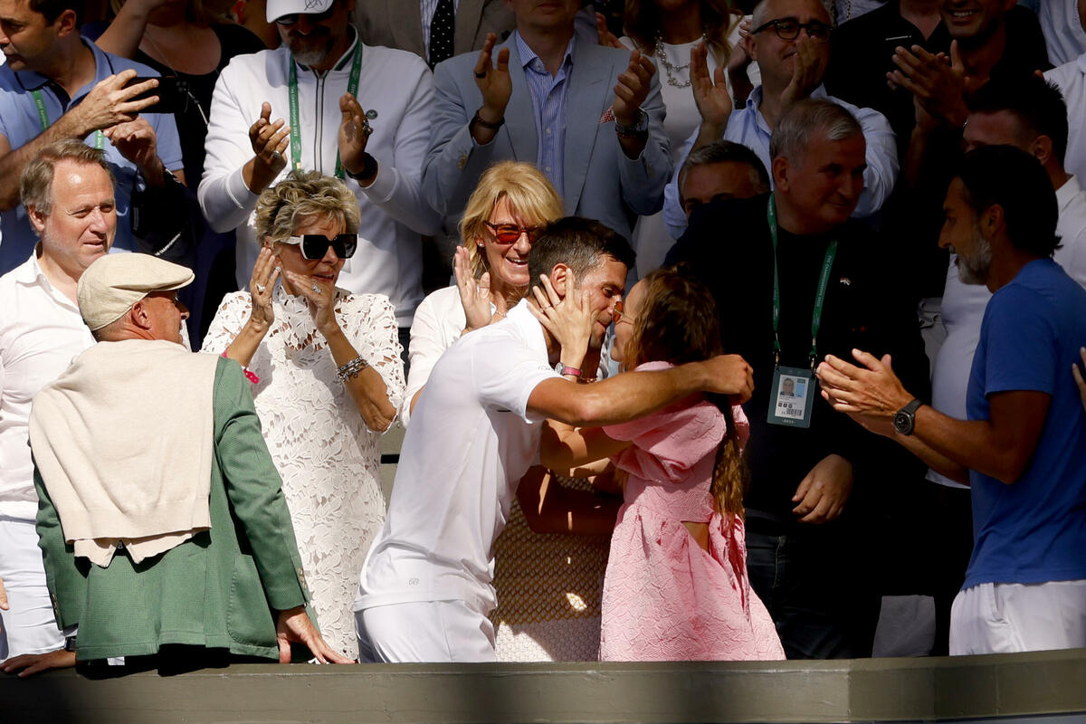 Novak se probio kroz navijače da stigne do lože u kojoj je bila njegova porodica, a najupečatljivija scena je ona kada ljubi i grli Jelenu...