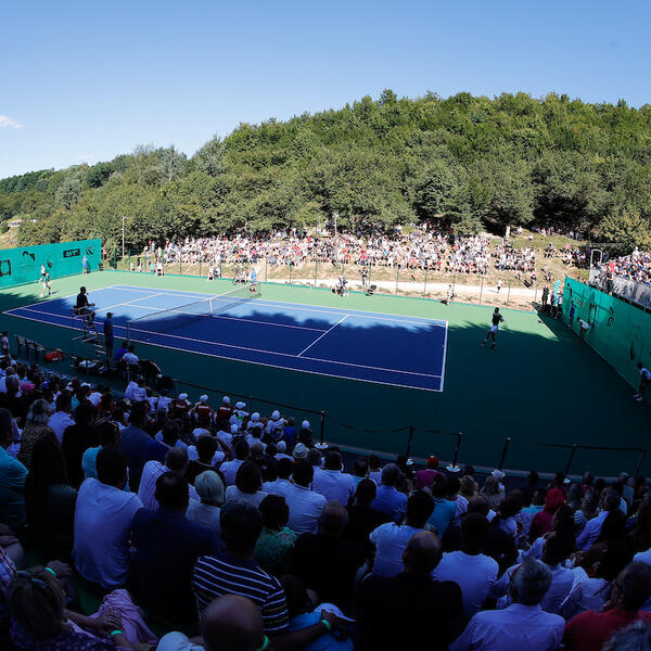 Novak Đoković je samo tri dana nakon odbrane titule na Vimbldonu opet na teniskom terenu. Londonsku travu je zamenio betonom podno Bosanskih piramida, gde se momentalno prilagodio egzibicionom karakteru turnira.