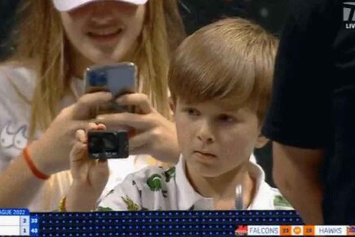 Njegovi nestašluci su svima zanimljivi, ali ovog puta je strpljivo gledao tatin meč.