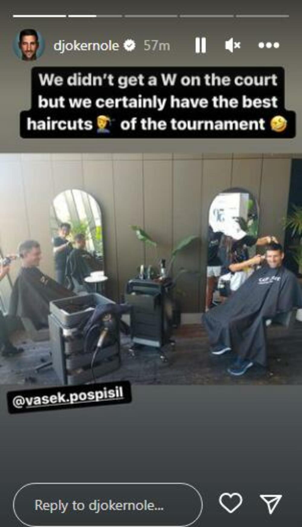 Zanimljivu fotografiju je okačio nakon poraza u dublu. Naime, on i Vasek su otišli kod frizera, pa im je neuspeh lakše pao.