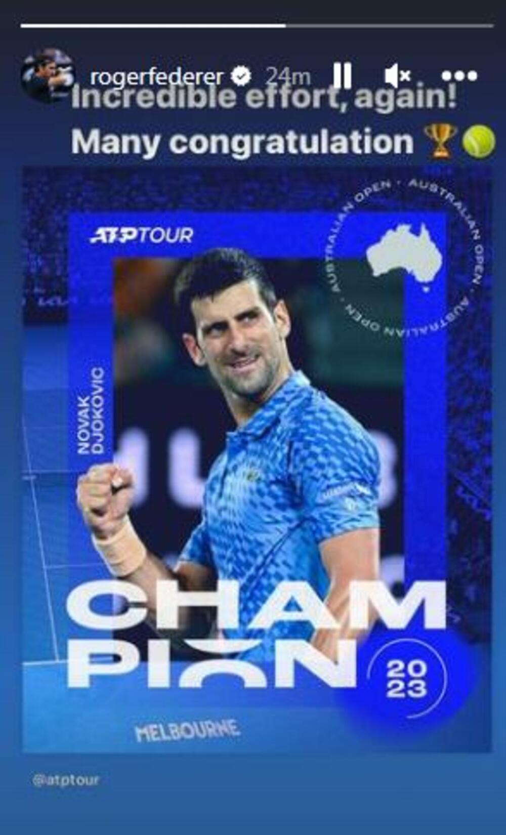 Legendarni Švajcarac i osvajač 20. Grend slem titula Rodžer Federer čestitao je Novaku Đokovića na osvajanju Australijan opena.