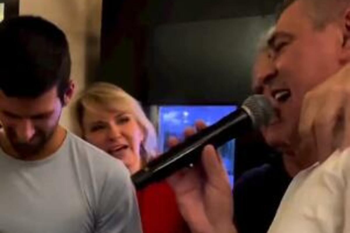 Prvi je poklonio Novaku svoju autobiografiju, drugi se latio mikrofona, pa je zapevao poznatu narodnu pesmu Harisa Džinovića "Pusti me".