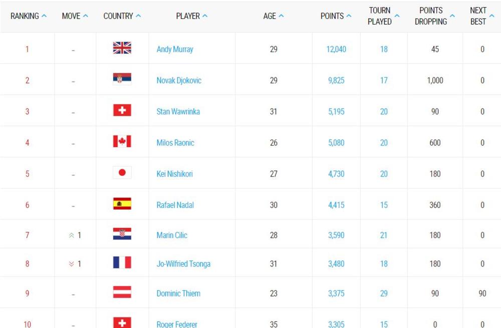 Treće mesto pripada Stenu Vavrinki sa 5.195. poena, četvrti je Miloš Raonić sa 5.080...