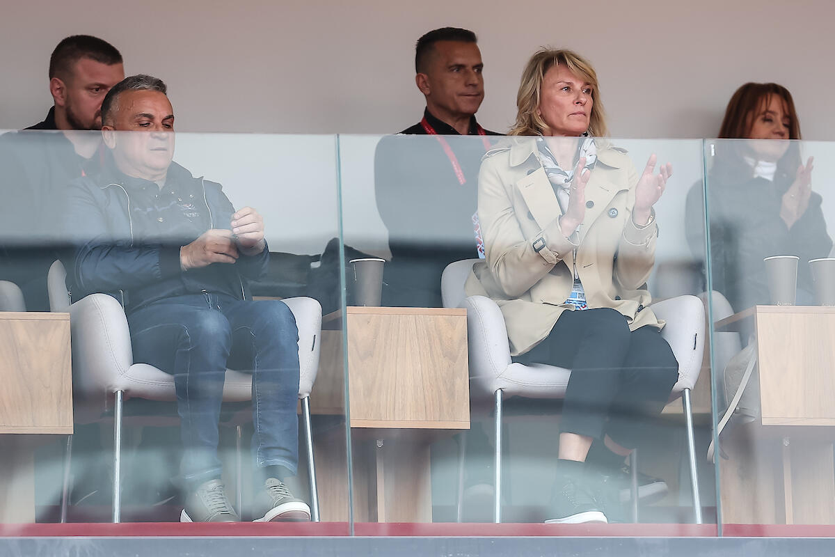 Pored njih, u loži se nalazi i proslavljeni košarkaški as Pero Antić.