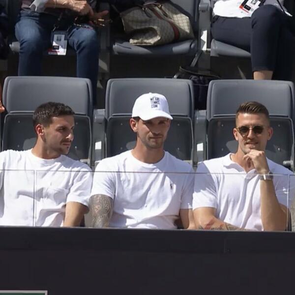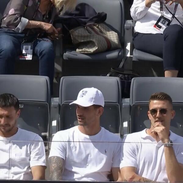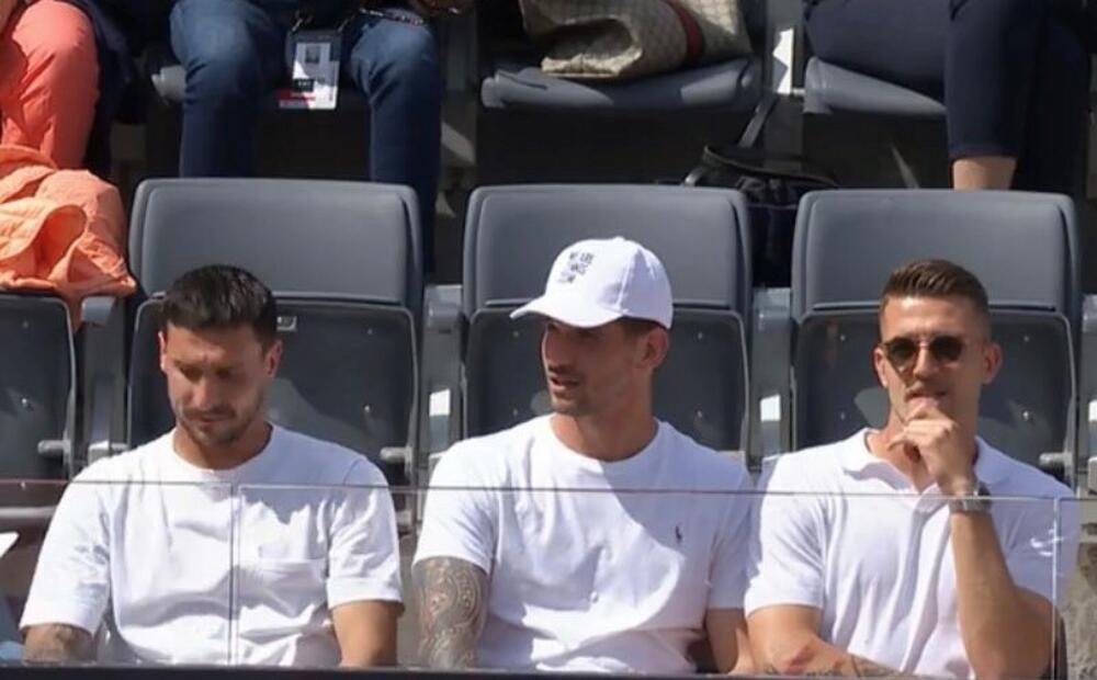 Sergej Milinković-Savić se u društvu kolega iz starijeg rimskog kluba nalazi na tribinama Foro Italika i gleda duel Đokovića i Grigora Dimitrova.