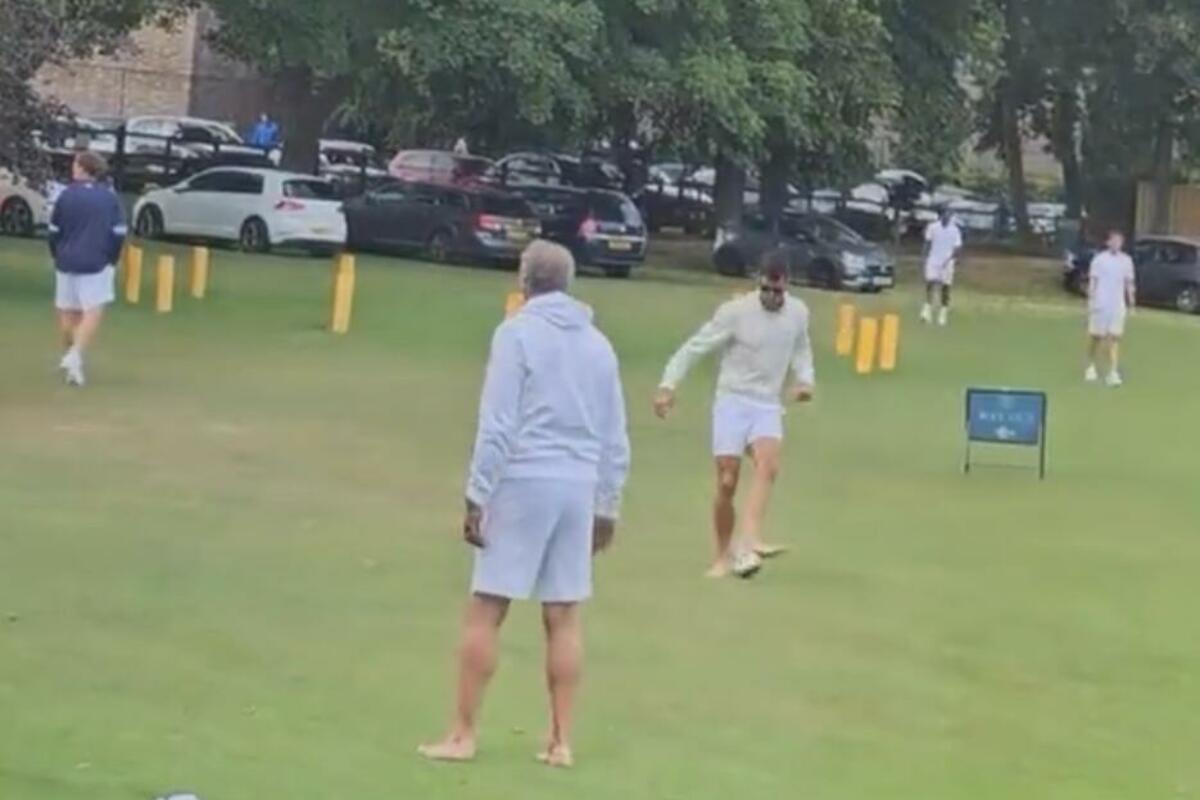 Đoković je bio bos na travi i igrao fudbal sa svojim timom, dok je nedaleko od njega Tijafo radio zagrevanje igrajući američki fudbal sa svojim timom.