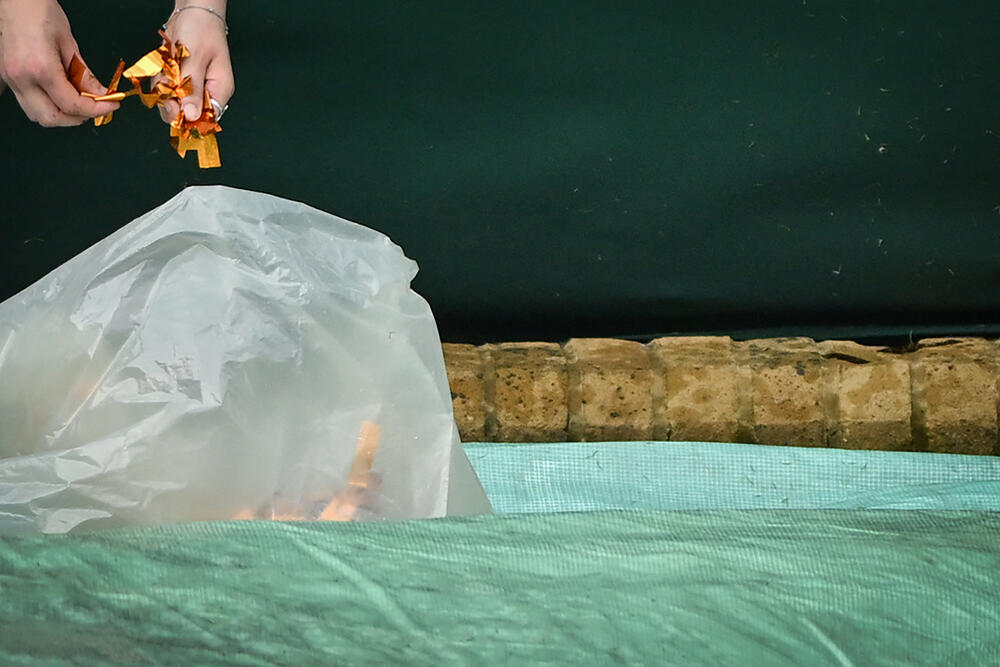 Jedan je samo ušao i seo na centar terena, a potom skinuo jaknu ispod koje je imao belu majicu na kojoj je verovatno bila ispisana i neka poruka, ali se na snimku ne vidi.