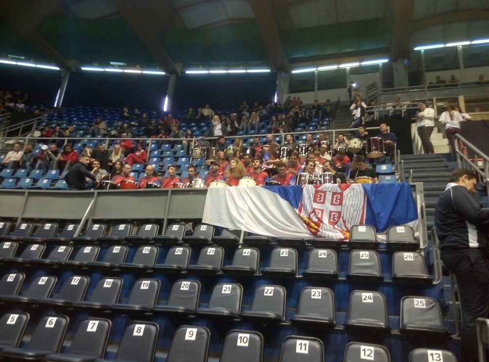 14.30 - Srpski navijači pojačani bubnjevima su spremni da naprave sjajnu atmosferu.