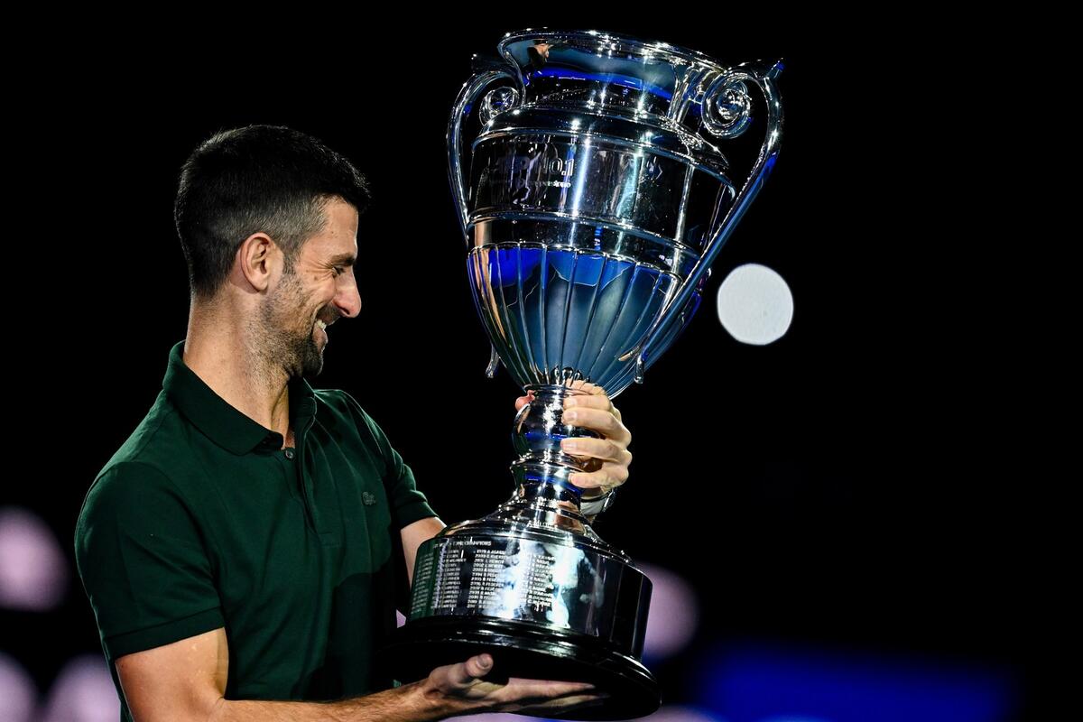 Najbolji teniser sveta Novak Đoković je podigao pehar namenjen najboljem teniseru na kraju godine, što mu je 8. rekordni put u karijeri.