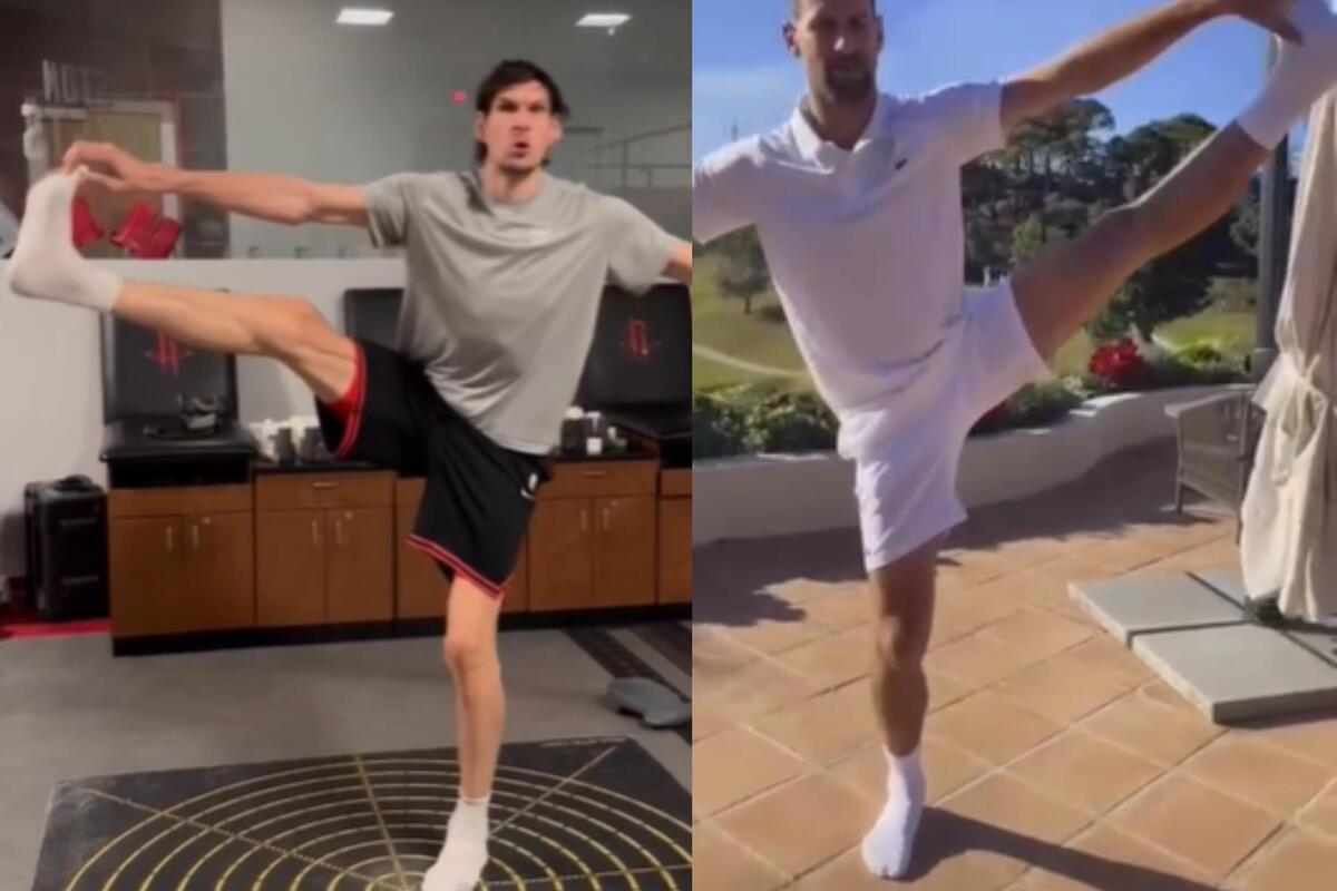 Iako je visok 224 centimetra, Marjanović je pokazao zavidnu savitljivost, ali i dobro nasmejao Novaka koji je podelio njegov snimak u storiju i odgovorio: