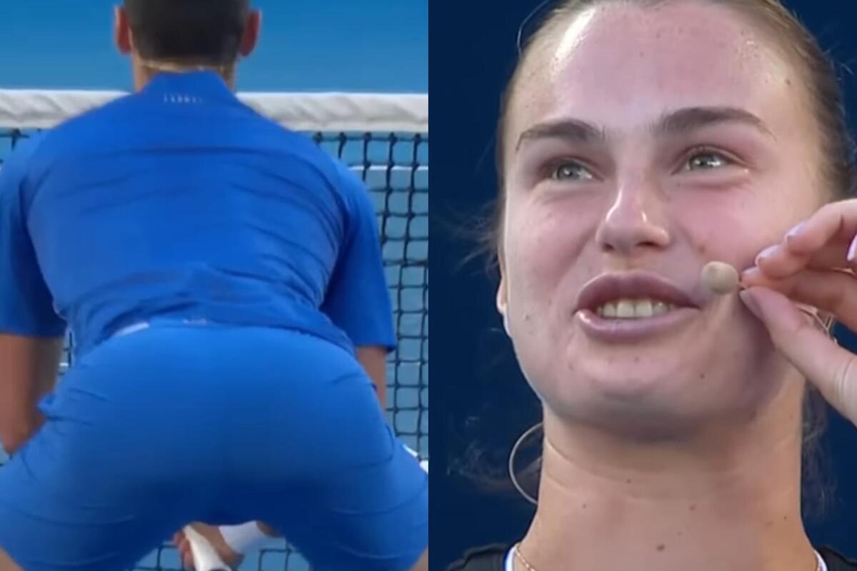 - Dobro, treba da gađam tebe, je li? - pitala je Sabalenka, a kada se Đoković opet sagnuo, Arina je napravila komentar koji je izazvao erupciju u publici: