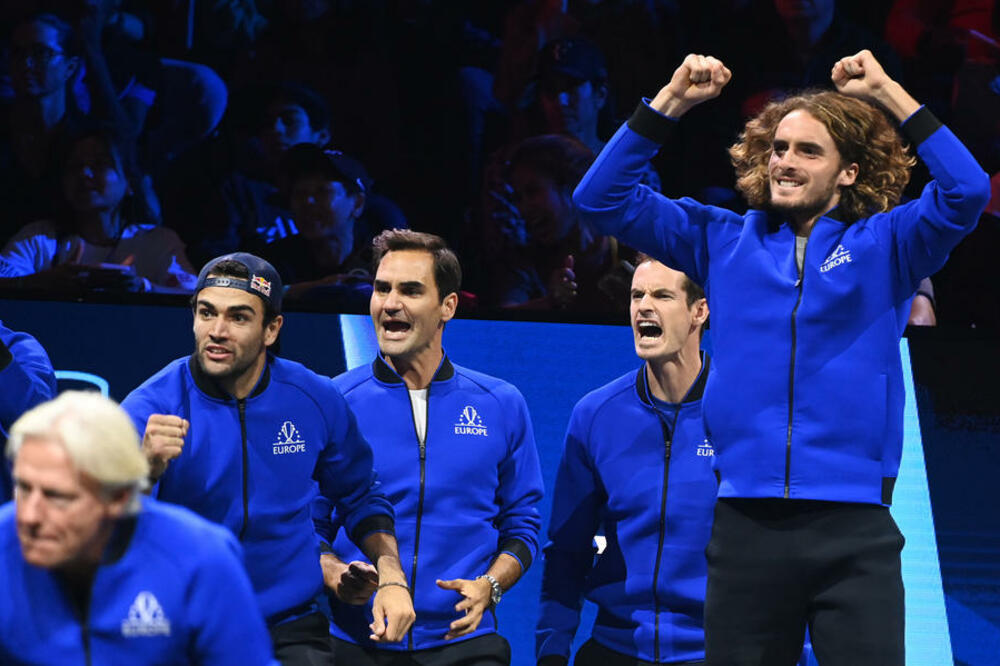 Mateo Beretini, Rodžer Federer, Endi Mari i Stefanos Cicipas, Foto: EPA/Andy Rain