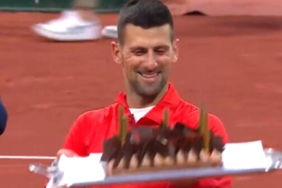 Novak Đoković sa tortom, Foto: Iván Aguilar/Twitter