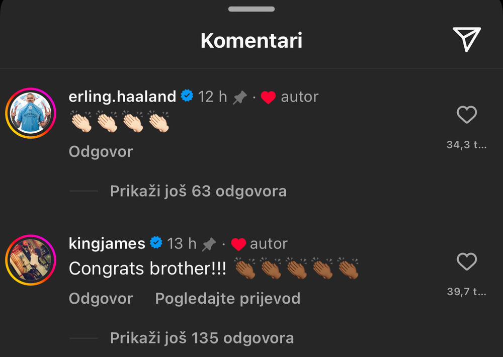 Čestitku putem Instagram storija uputio je i legendarni fudbaler Zlatan Ibrahimović uz reči "jednostavno najbolji."