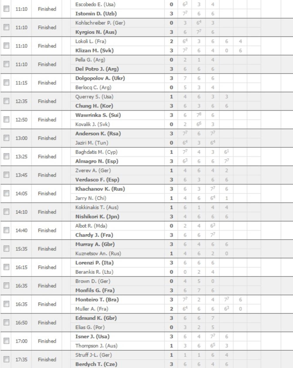 U drugo kolo plasirao se i Uzbekistanac Denis Istomin, koji je sa 3:0 pobedio Amerikanca Ernesta Eskobeda.