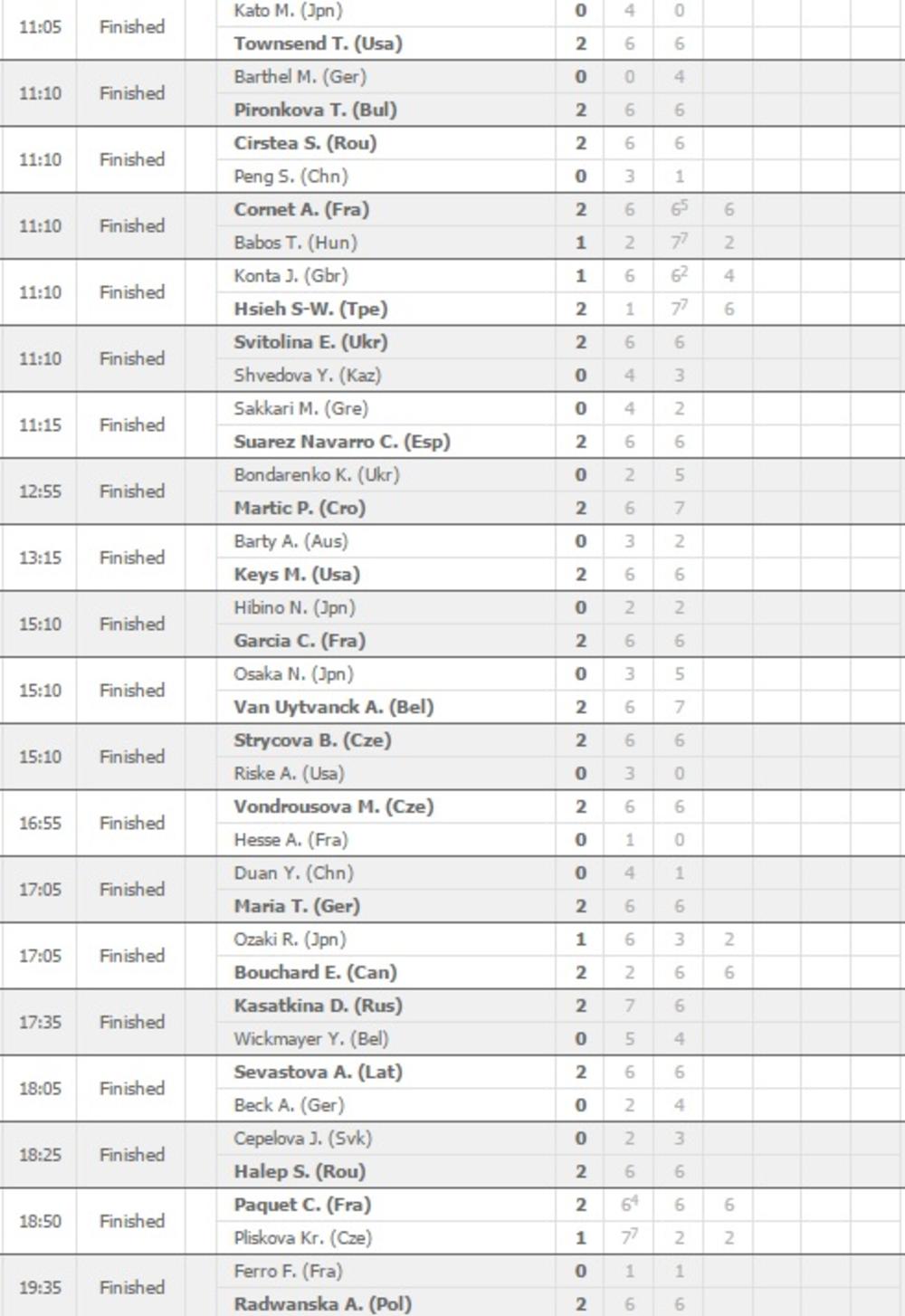 Kod dama su se desila dva iznenađenja - Džoana Konta je sa 2:1 izgubila od Hije, dok je domaća teniserka Pake bile bolja od Karoline Pliškove.