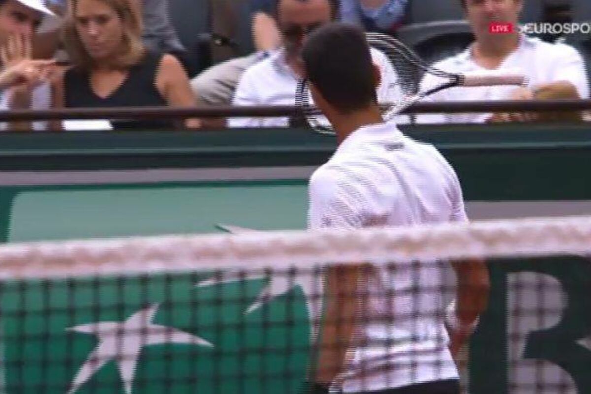 A, u jednom momentu, Nole nije mogao da se pomiri sa svojim ne toliko dobrim potezima, pa je bacio reket na zemlju, ali ne previše nasilnički, više iz revolta prema trenutnoj nemoći.