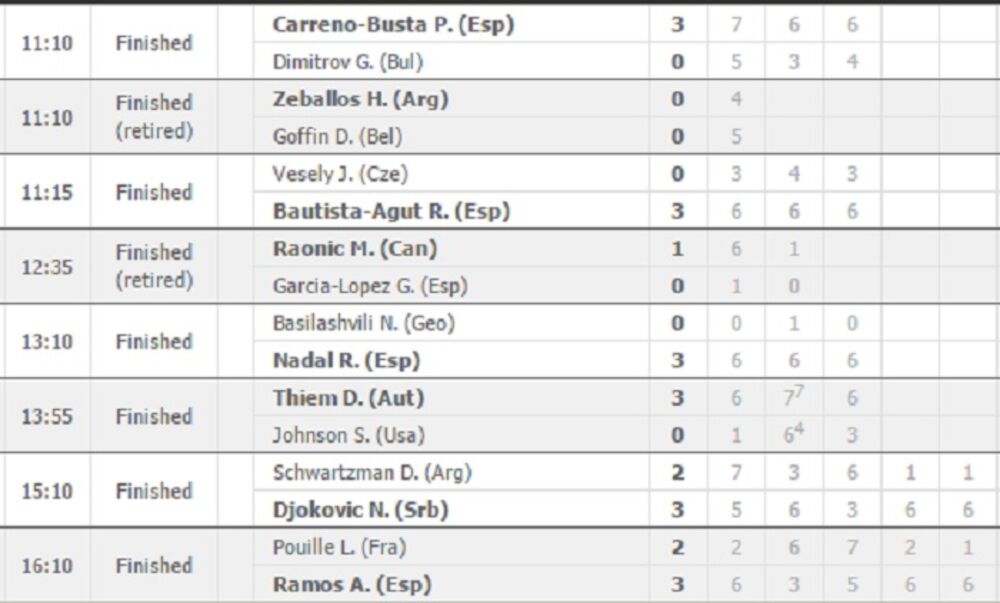 Dovoljno je reći da nije bilo nijednog iznenađenja, a pred vama su svi rezultati i u muškoj i u ženskoj singl konkurenciji.