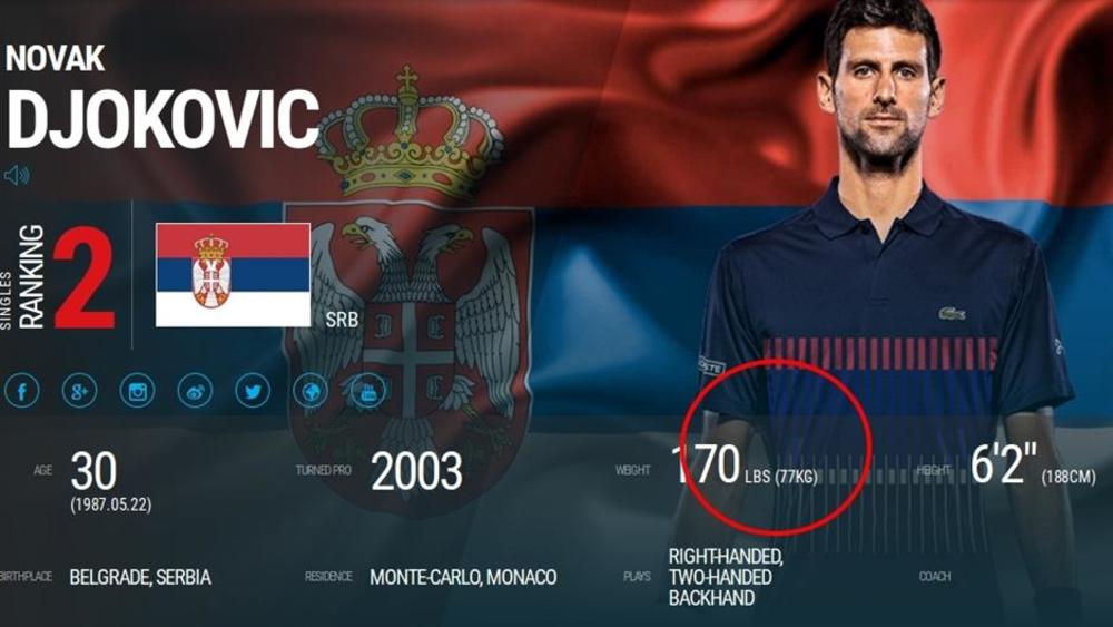 A, ono što dodatno treba da raduje sve fanove srpskog teniskog asa je činjenica da je u odnosu na početak sezone uspeo da dobije dva kilograma, pa sada umesto 75, koliko je zvanično imao prema saznanjima ATP sajta, ima 77. I dalje je to malo s obzirom na to da je visok 188cm, ali polako.