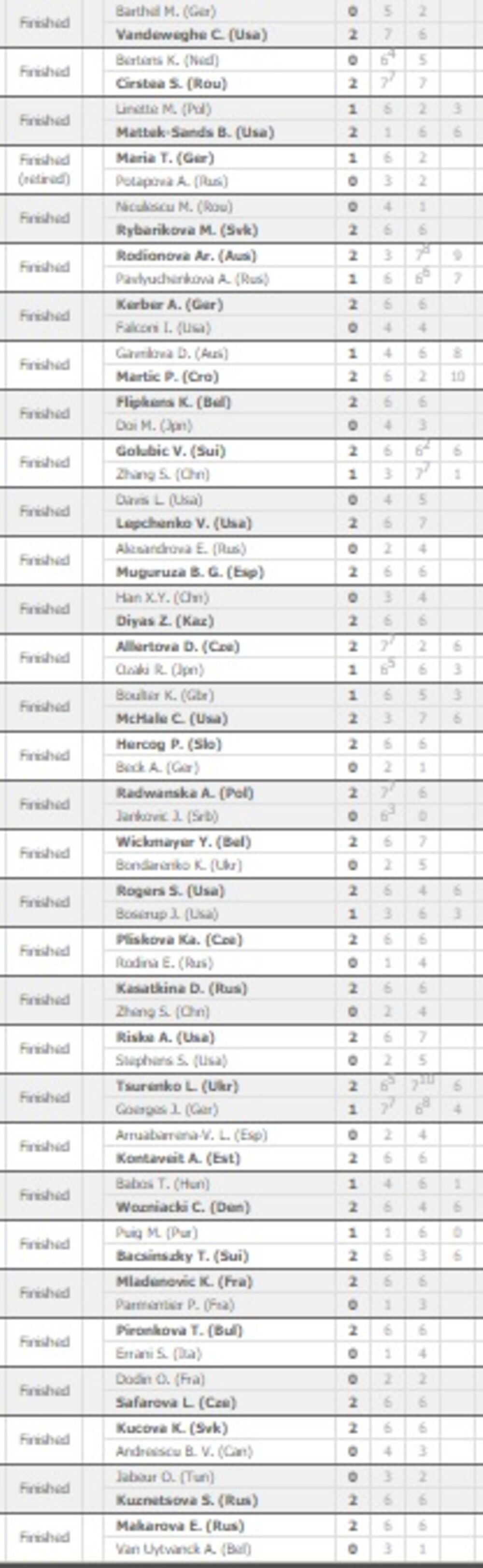 Do drugog kola stigla je i Ruskinja Svetlana Kuznjecova, koja je na startu trećeg grend slem turnira u sezoni bila bolja od Uns Džabir iz Tunisa sa 6:3, 6:2. Kuznjecova će u narednom kolu igrati protiv zemljakinje Ekaterine Makarove.