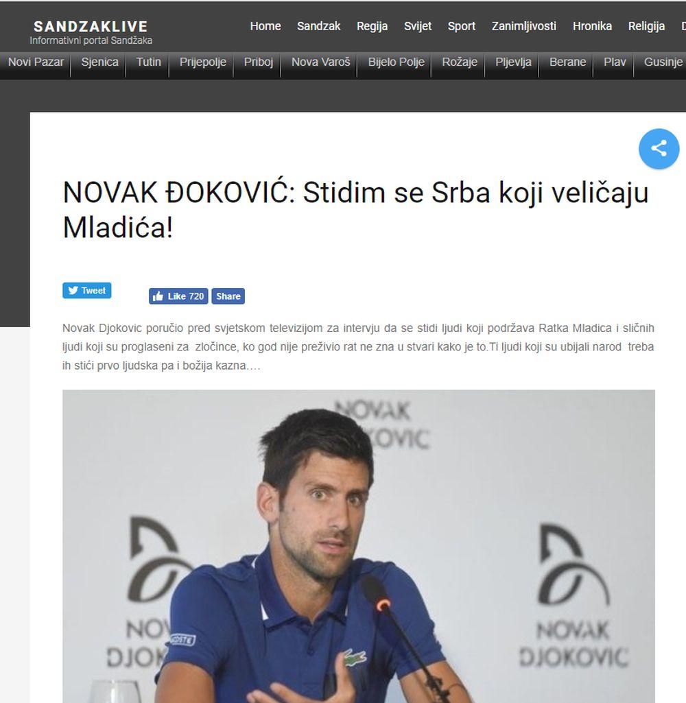 Upravo ovo poslednje je pokušao da učini portal "Sandžaklive" i to sa Novakom Đokovićem, najboljim srpskim sportistom svih vremena, pokušavajući da mu stavi u usta nešto što ne da nije rekao, nego nije čak ni pomenuo.