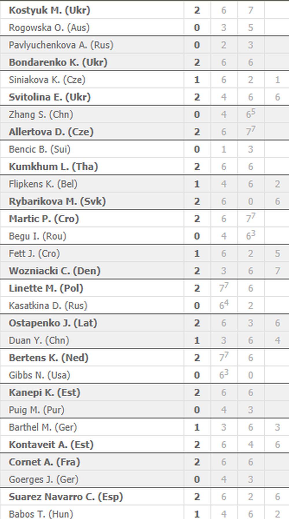 Ipak, bilo je drugih nekih iznenađenja u ženskoj konkurenciji, ispala je 18. igračica planete, Pavljučenko, od 94. na svetu Katerine Bondarenko, potom poraz 12. teniserke na WTA listi Julije Gergeš od Aliz Korne...