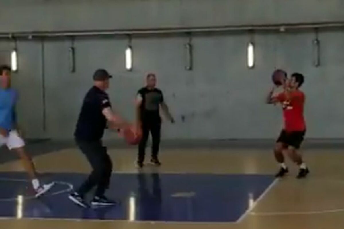 Tako je i sada u Madridu, gde učestvuje na Mastersu, slobodan dan između mečeva iskoristio da u hali odigra malo basketa sa svojim stručnim štabom.