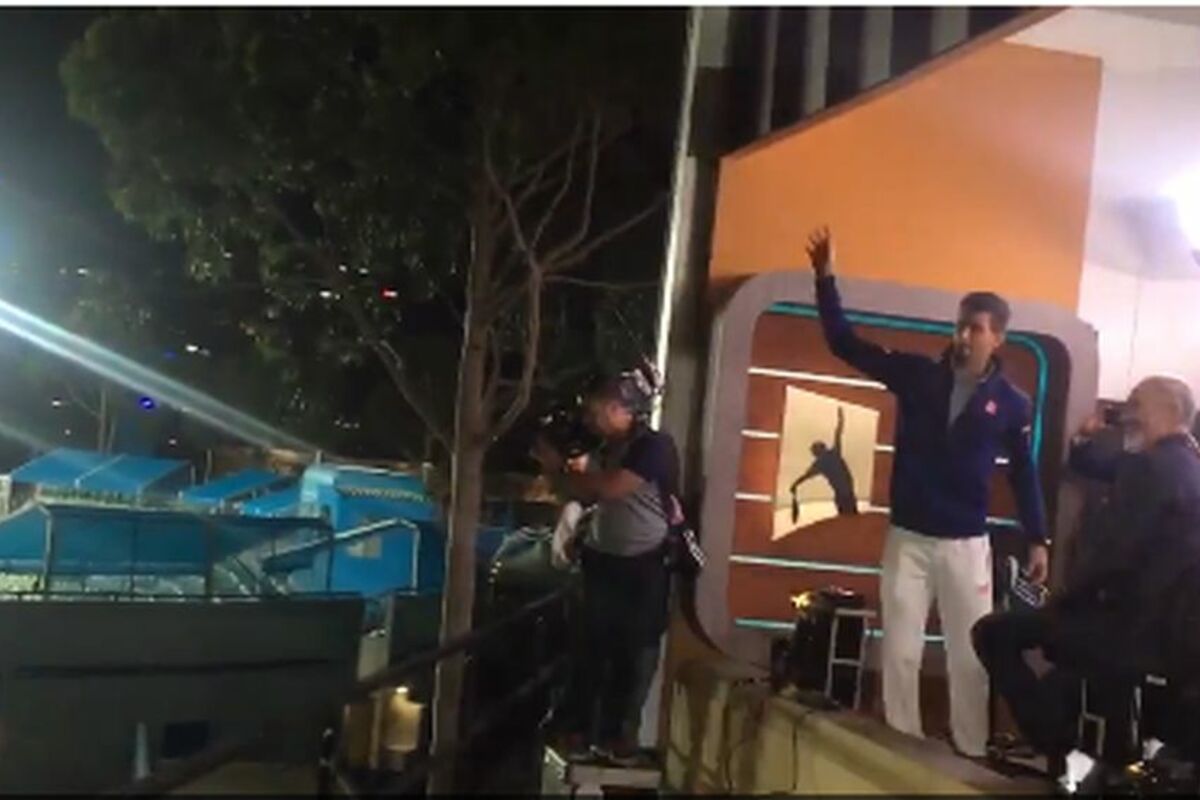 Srpski teniser je izašao na terasu da pozdravi okupljene navijače koji su mu skandirali, a on im je uzvratio bacanjem opreme