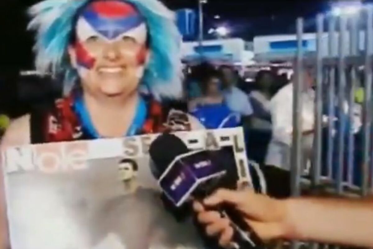 Međutim, jedna gospođa se može nazvati najvećim navijačem srpskog tenisera. Bila je iscrtana u bojama srpske zastave kao Indijanka i odmah privukla pažnju lokalne televizije.