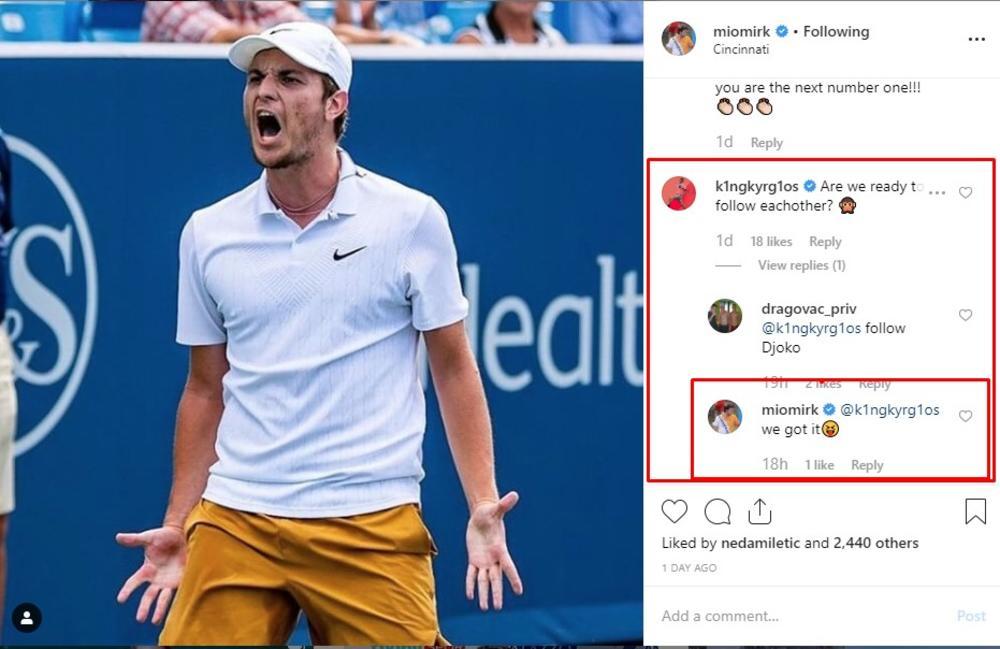 Naime, Kirjos je na Instagramu poslao poruku srpskom teniseru Miomiru Kecmanoviću, a jednim predlogom.