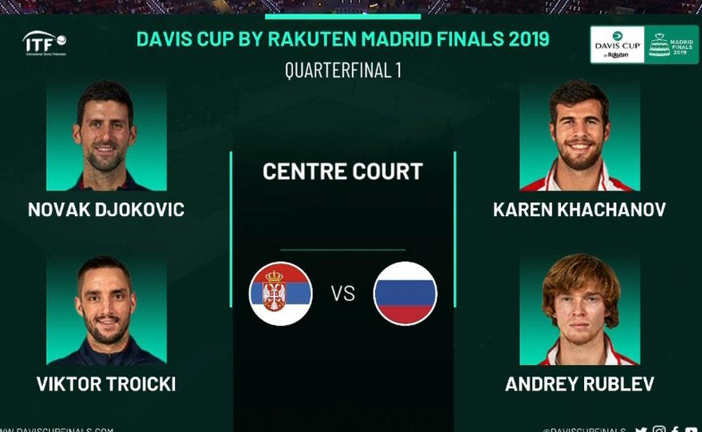 Današnji dan je počeo loše za Srbiju. Filip Krajinović je ubedljivo izgubio od Rubljeva 6:1, 6:3 i tako stavio našu selekciju u nezgodnu situaciju. Na veliku sreću Novak Đoković je pokazao zašto je naš najbolji teniser. Drugi reket sveta je u dva seta bio bolji od Karena Hačanova. Iako rezultatski deluje da je bilo lako, Novak je ima dosta problema sa Rusom, ali je na kraju rutinski slavio, pa je dubl morao da odlučuje polufinalistu i protivnika Kanadi, koja se ranije plasirala među četiri najbolja.
